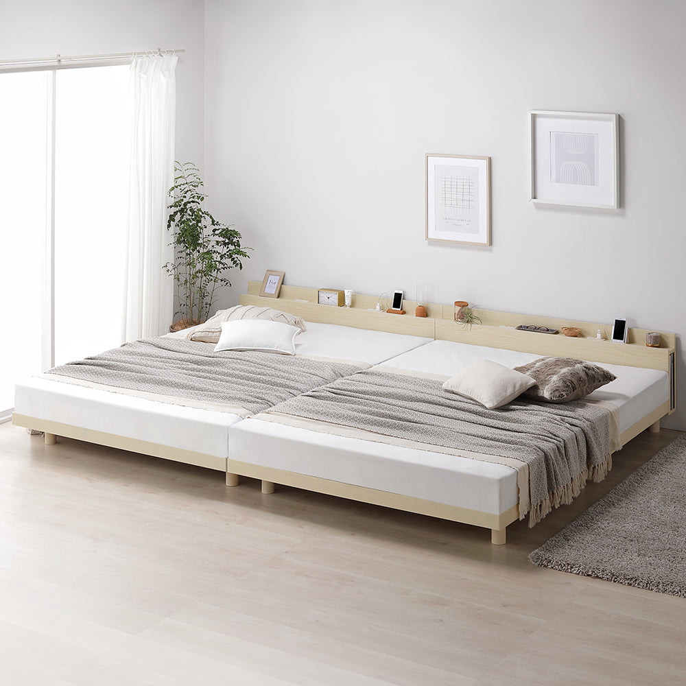 ストーングレー本体のみクイーン160 SS+SS 本体のみファミリーベッド フロアベッド 幅160~280cm ベッド ベッドフレーム2口コンセント付き 連結ベッド すのこベッド 宮棚 ロータイプベッド フラット式 フレームのみ マットレスセット すのこベッド クイーン。