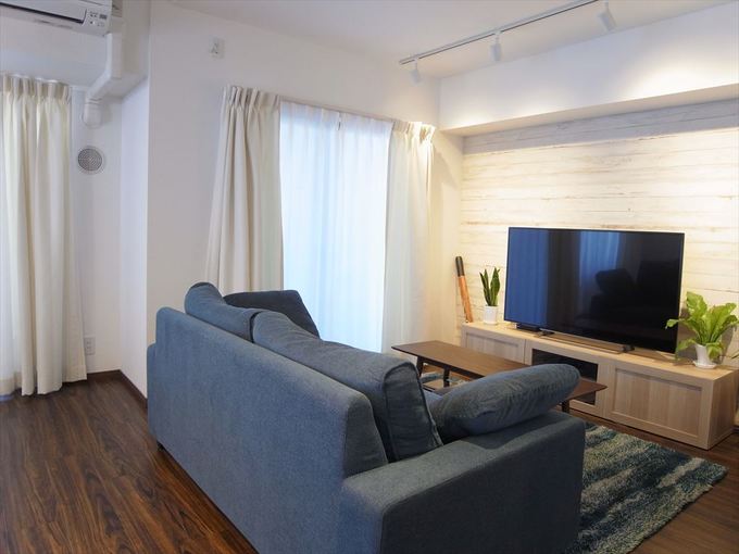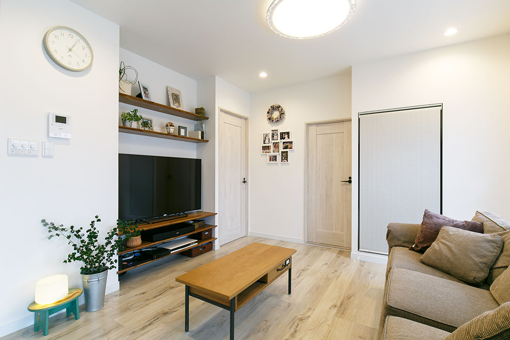 マンションをロンハーマン風のおしゃれナチュラルなインテリアにお風呂はタカラ伸びの美浴室で拡張藤沢市リフォーム事例 リビング。