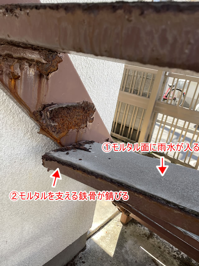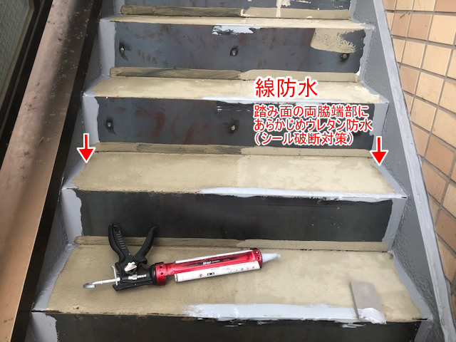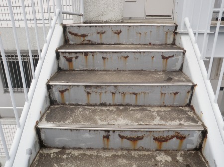 鉄骨階段延命工事でのモルタル段板階段の耐水事情横山鉄工所。
