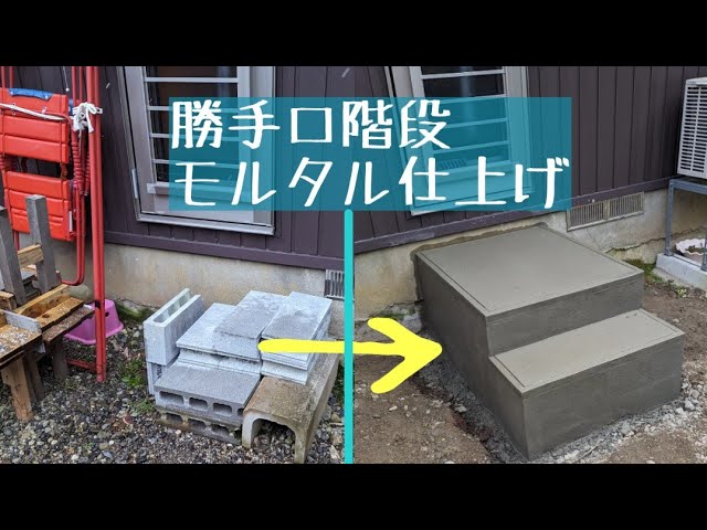 モルタル塗り 勝手口の階段をモルタルで仕上げていくぞ。
