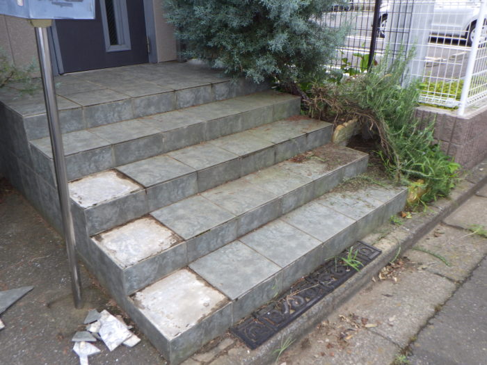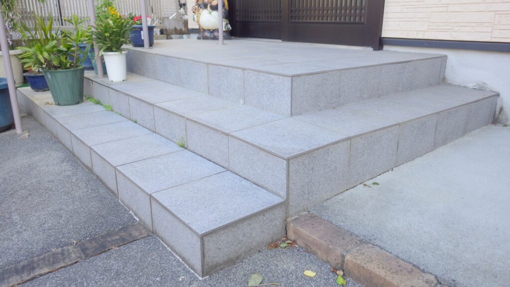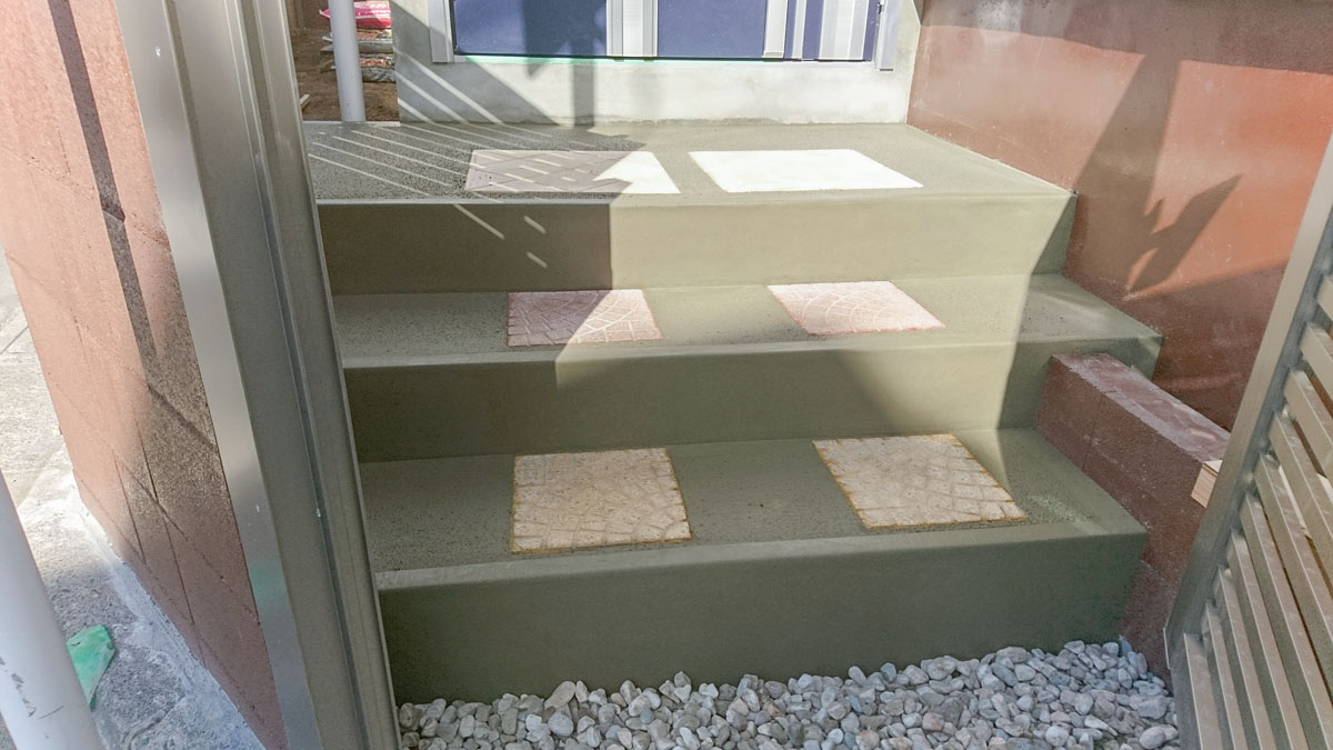 外部階段と玄関アプローチの工事 階段仕上げ- 福岡市のリフォーム専門店-航工房-水廻りや床暖房が得意。
