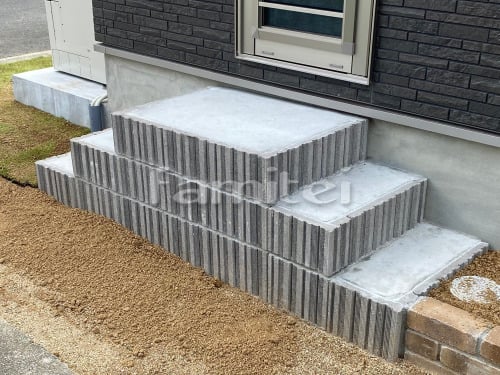 モルタル階段ステップ 化粧ブロック ユニソン アルタの外構施工例 現場番号:36136- ファミリー庭園奈良店。