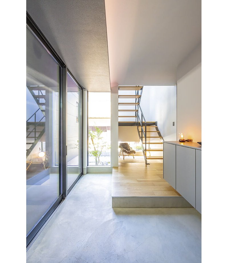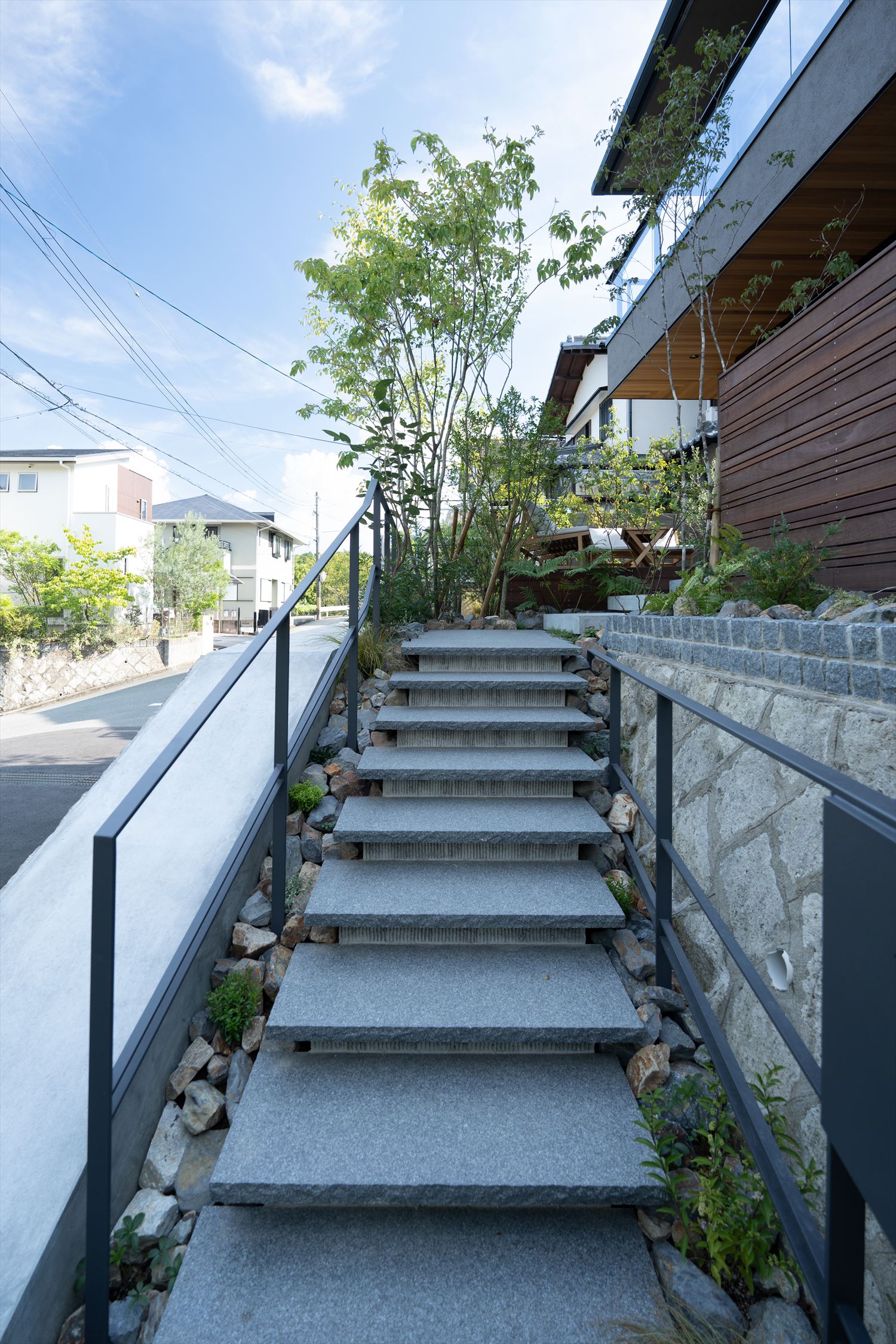 兵庫県 フロートとモルタル階段のミニマルアプローチ 大阪外構・エクステリア・ガーデン外部空間デザイン・グラン。