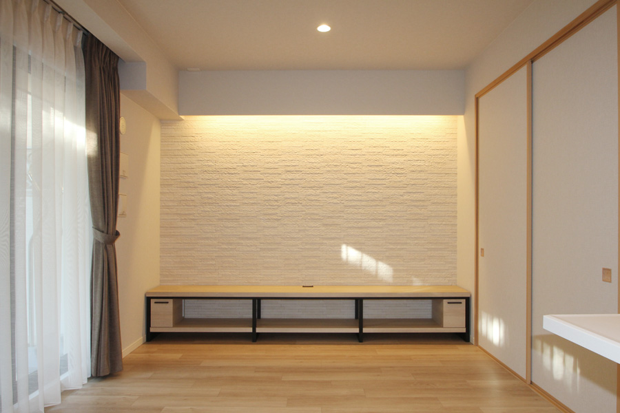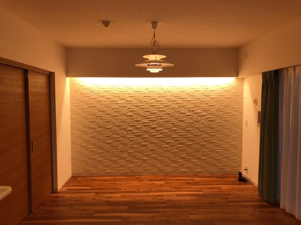 間接照明でエコカラットの壁面をグレードアップ中野区住宅リフォーム・リノベーション専門のLIXILリフォームショップ。