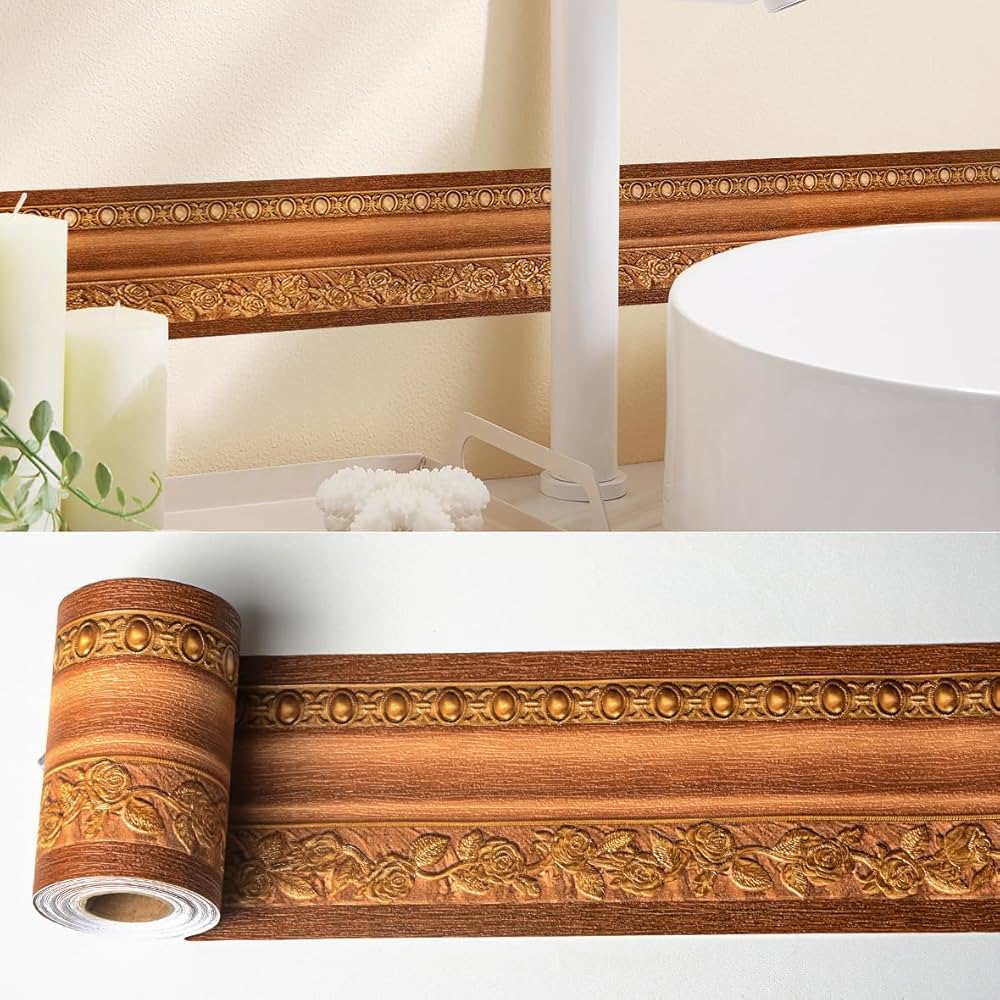 TIANLDD 27フィート 木目調壁紙ボーダー、取り外し可能な防水ミラーボーダー 剥がして貼れる、バスルームミラーフレームボーダー Amazon木目 浮彫マスキングテープ 壁紙シール 立体 トリムボーダー インテリアシール はがせる 木目 浮彫 3d 凹凸 リメイクシート。