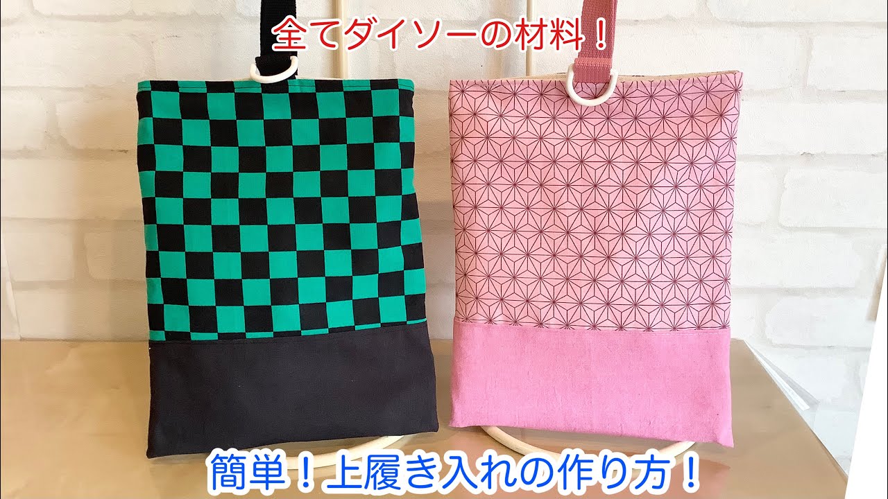 全てダイソーの材料で上履き入れの作り方!簡単な作り方です!How to make a shoe bag! It's easy tomake!sewing tutorial。