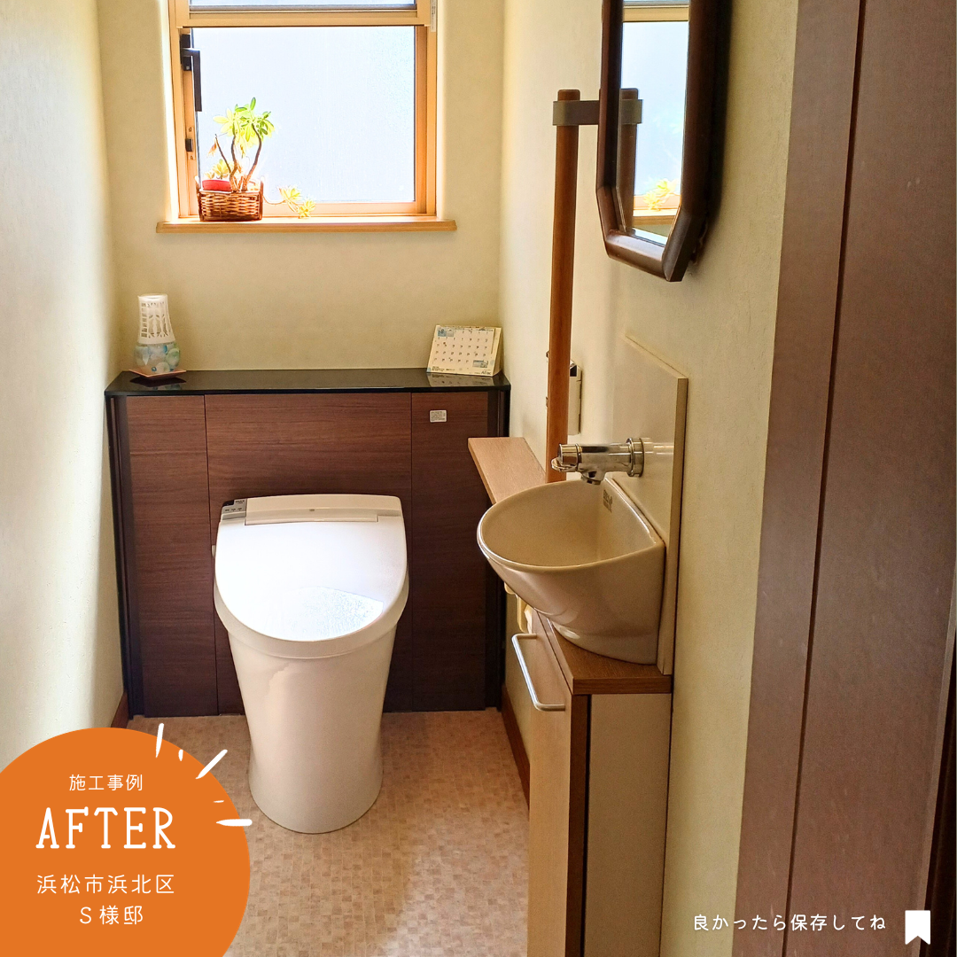 キャビネット付きで見た目すっきりなトイレへ 浜松 リフォームSuidobi株式会社 浜松市。