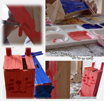 夏休みの工作♪割り箸貯金箱The sunny side of Mogera & Mugera。