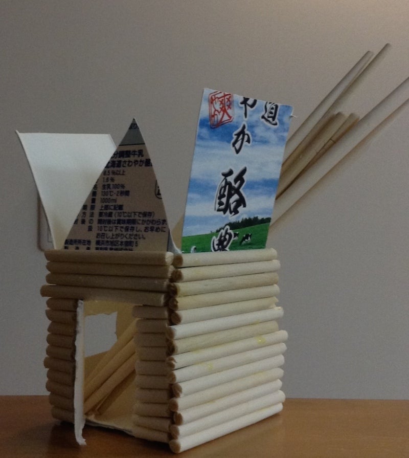 木のおうちの貯金箱を手作り! アイスの棒を牛乳パックに貼り付けるだけで簡単おすすめな木の家の作り方♪子供たちの夏休みの自由工作におすすめ♪。