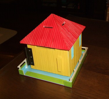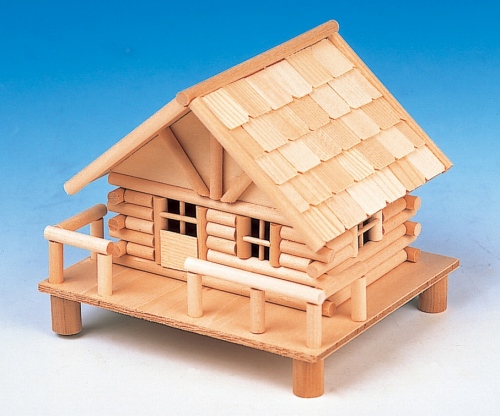 木工工作キット手作り貯金箱ログハウスポピュラータイプ。