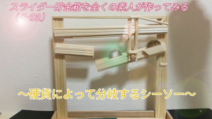 割り箸でスライダー貯金箱を全くの素人が作ってみる その4 最後です - YouTube。