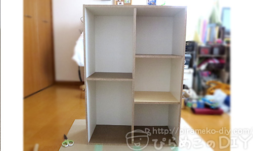 子供っぽいカラーボックスを100均リメイクシートDIYで変身させリサイクルする方法。