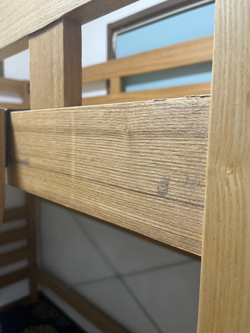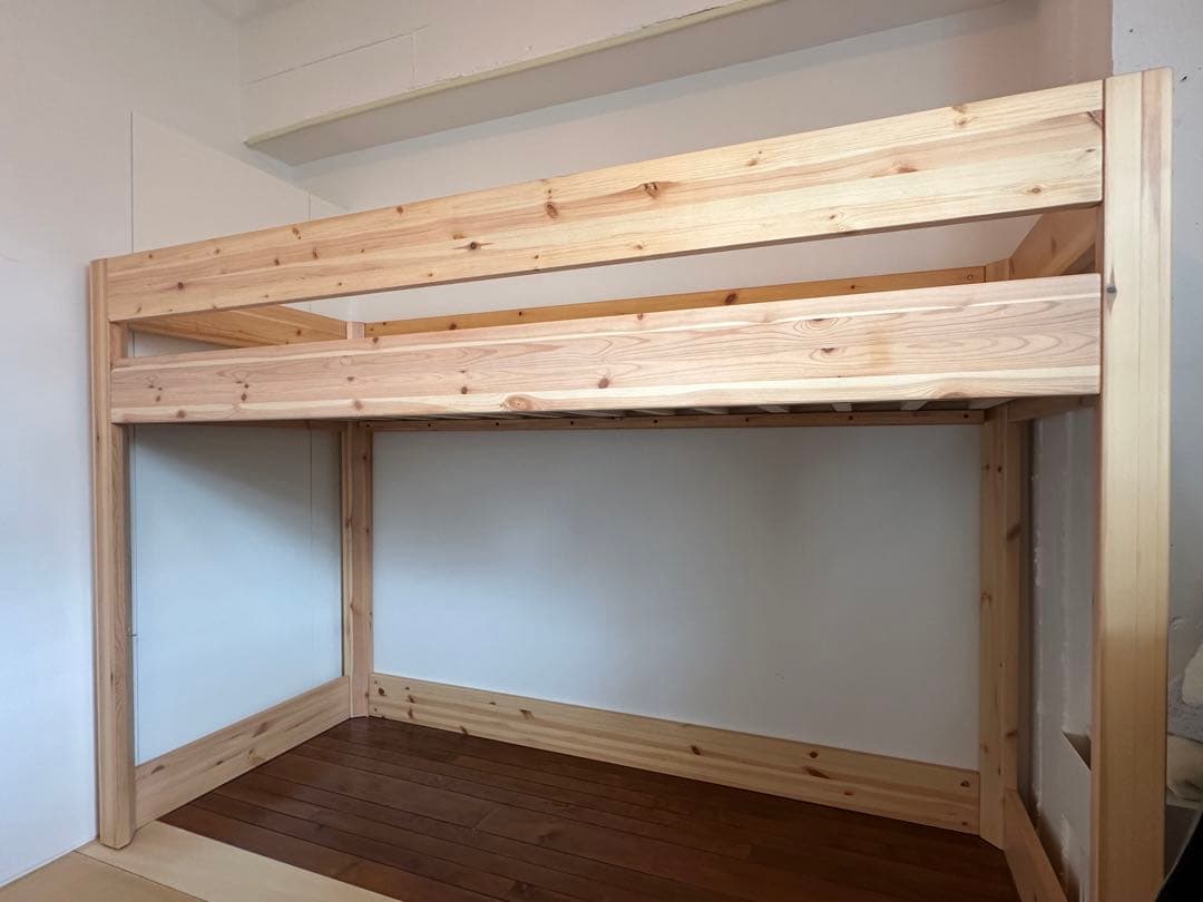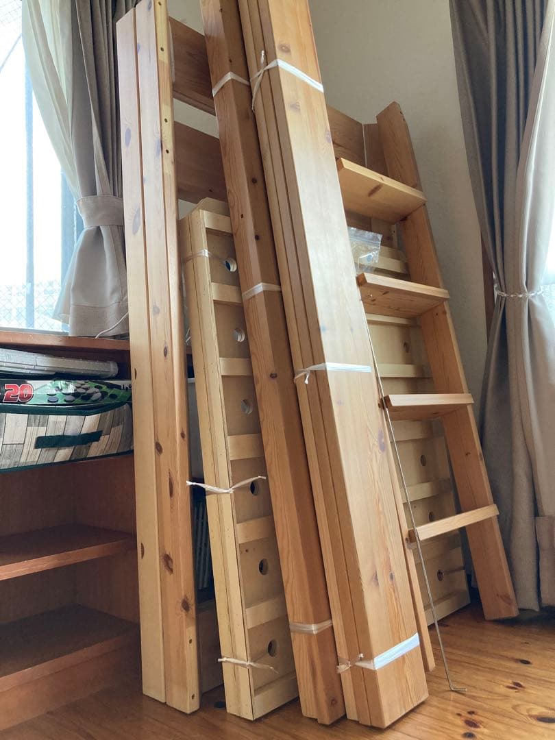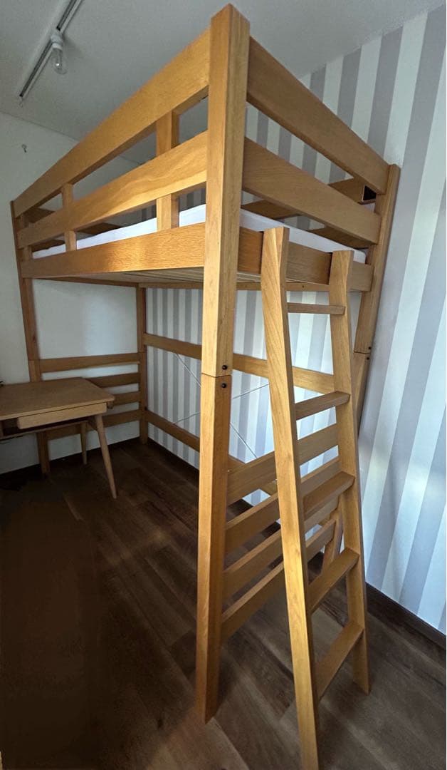 無印良品ロフトベッドオーク材ハイベッド1段組換え可能。