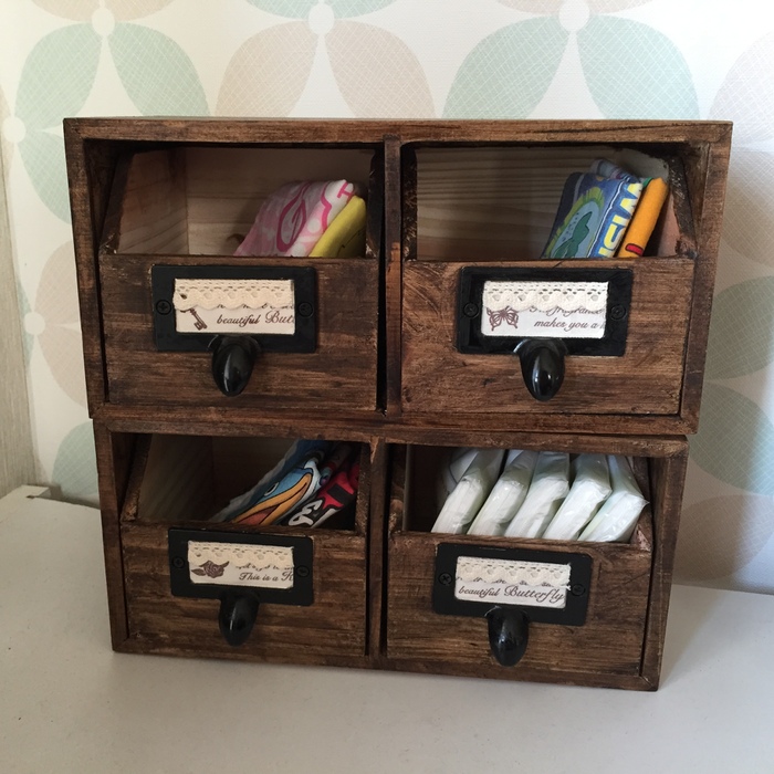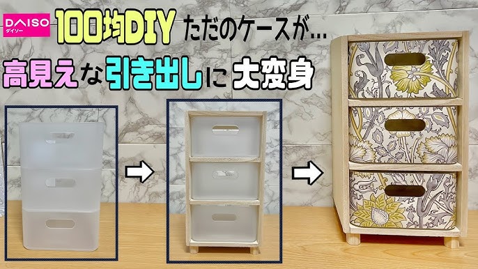 オシャレな 100均DIYリメイクシート ただのケースが高見え引き出しに大変身!!リメイクシートで上品にさせる!!脚をつけるポイントあり!! DAISOdiy収納リメイクシート。