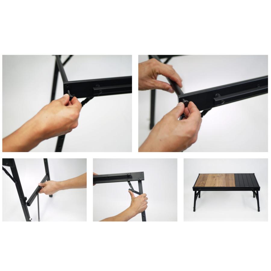 FIELDOOR フィールドアアルミパネルテーブル 高さ無段階調整。