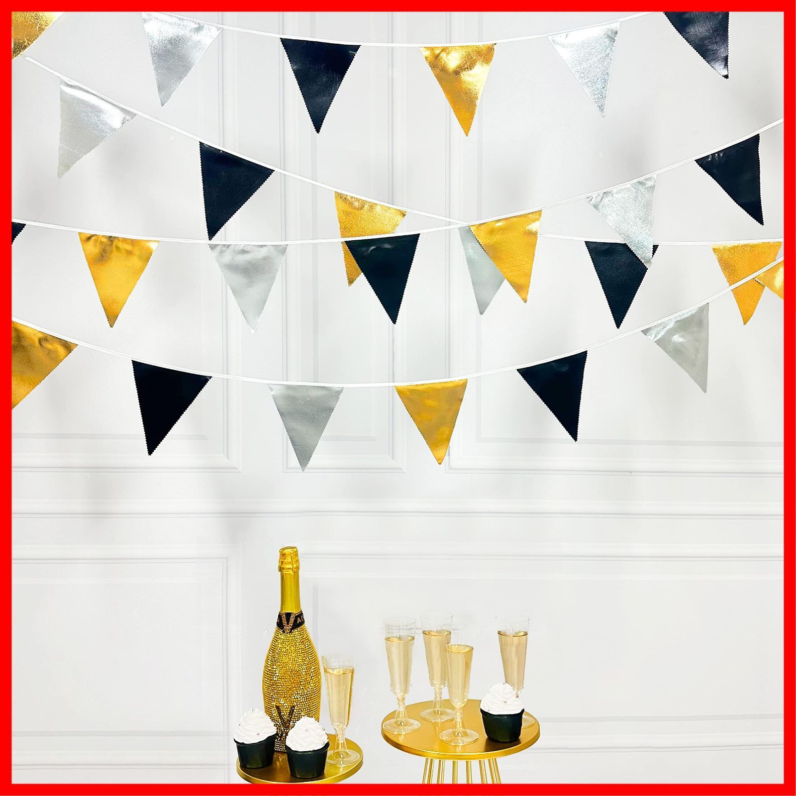 在庫わずか ペナント旗 男の子誕生日 ブラックゴールドとシルバー 飾り付け 結婚式 飾り光沢のある パーティー 飾り 布ガーランドバナーパーティーキャンプ 飾り 子供部屋の装飾 黒金と銀三角旗 卒業 退職お祭り PinkBlume 用品 アウトドア旗水洗い - メルカリ。