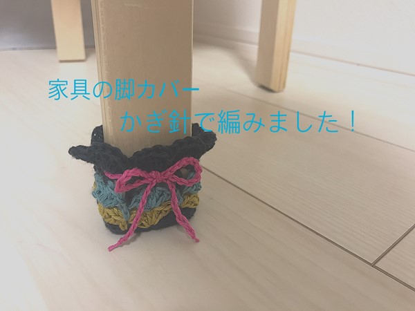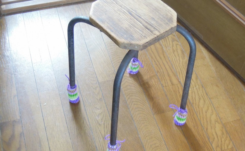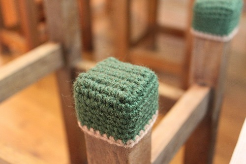 床に傷をつけない!椅子やテーブルの脚にカバーを編みました。KNIT LABO BLOG。
