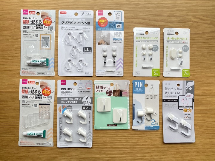 壁に穴を開けないフックは何がある?ダイソー・セリア100均編。