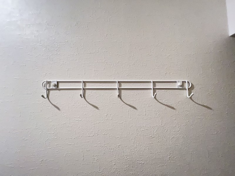 賃貸でも諦めない ネジを使わずに、ダイソーの5連フックを壁掛けしてみたみーるらいふ。
