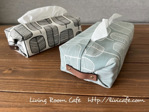 1枚布の縫わないティッシュボックスカバー サイド革ベルト付き : Living room cafe diary。