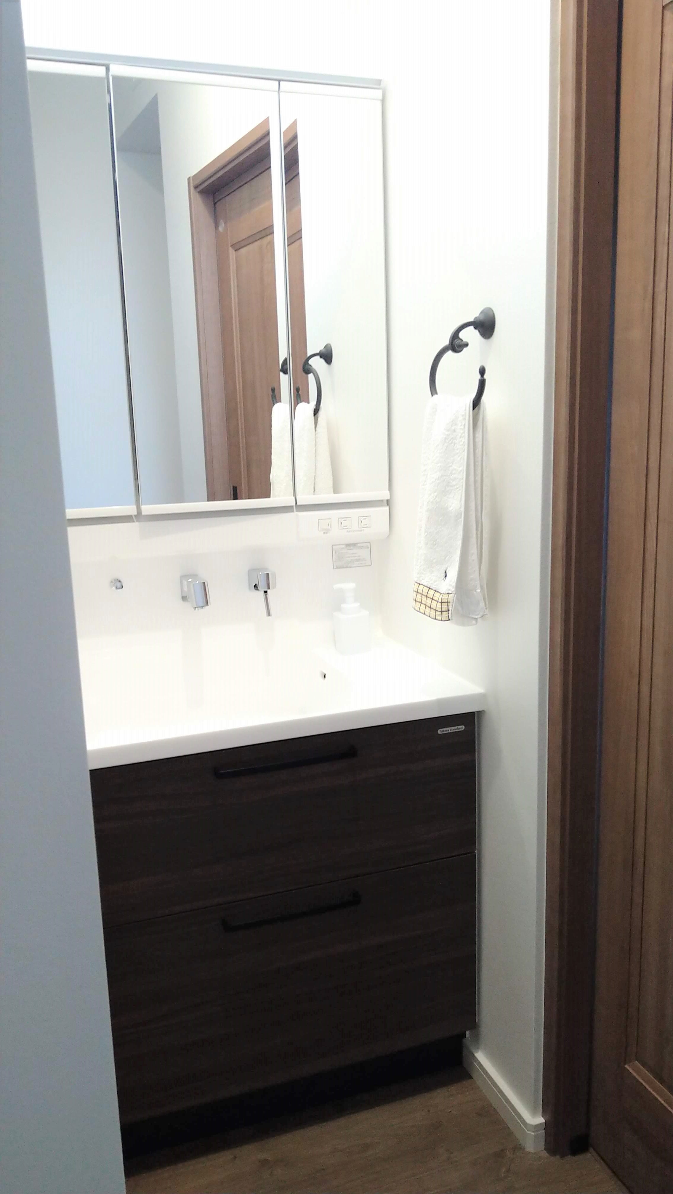 恐るべし標準仕様。まるで建売住宅な洗面台・。とかげさんの家事ラクな家。