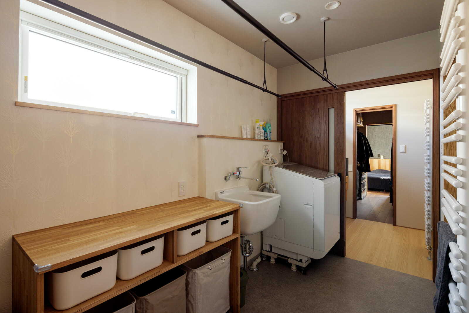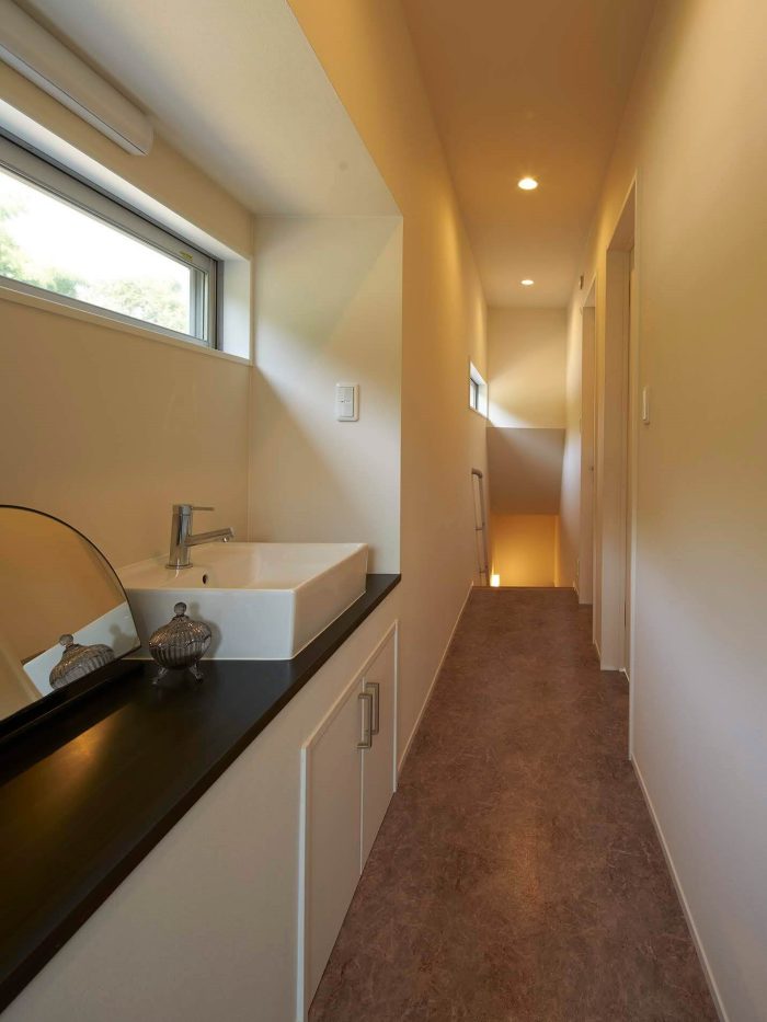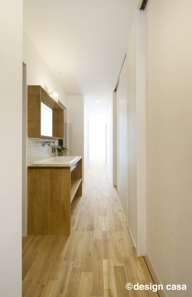 廊下には洗面台も くふうイエタテ。