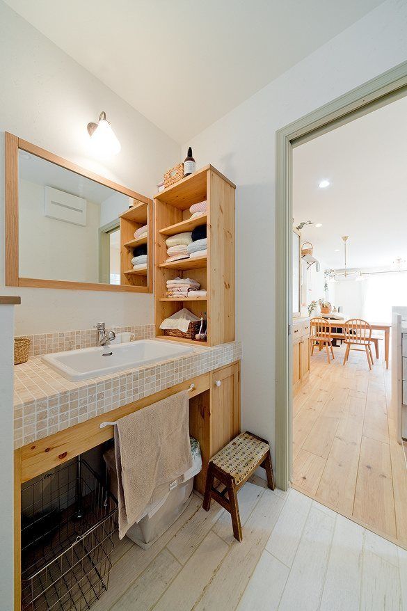 廊下スペースに設けた洗面 脱衣場からもトイレからも寝室からも 近くて 便利な間取りです ✨ , ,平屋 平屋の家 洗面所 三面鏡 収納洗面収納 木目調クロス 無垢床------------------------------ @daiichi_fujieda 藤枝市水守2-1-1 TEL054-645-5900。