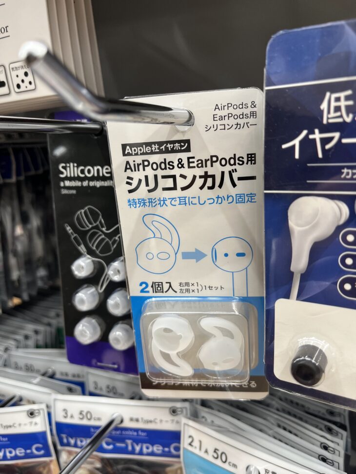 100均レビュー 「AirPods&EarPods用シリコンカバー」100円でイヤーフック化。