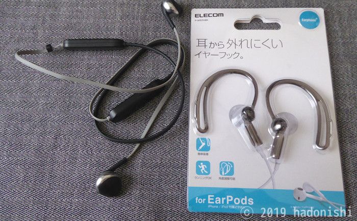 JBL Bluetoothイヤホン TUNE205BT にエレコムのEarpods用イヤーフックを取り付けたけど意味はなかったハドニシニッシ。
