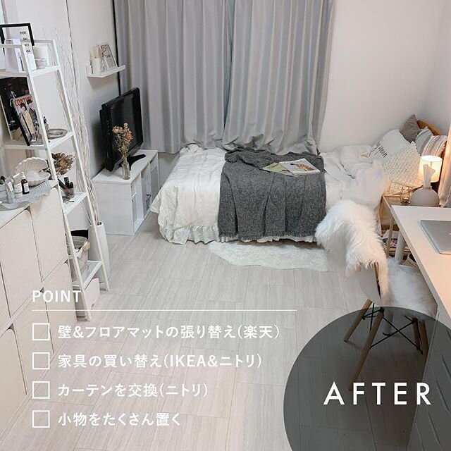 ⠀ 私のダサい実家のお部屋が、 ホワイトインテリアのお洒落 に見える お部屋になるまでの 道のりをまとめました! ⠀改造スタートが6月で、このインスタを始めたのが7月なので、 1ヶ月ほどで改造したお部屋になります🕯 𓇠 ⠀ 最後の写真⑧以外は、全て無加工です。