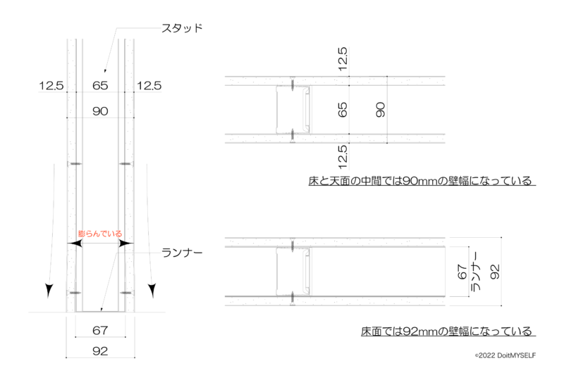 図面のキホン軽鉄の幅は92mmDo it MYself。