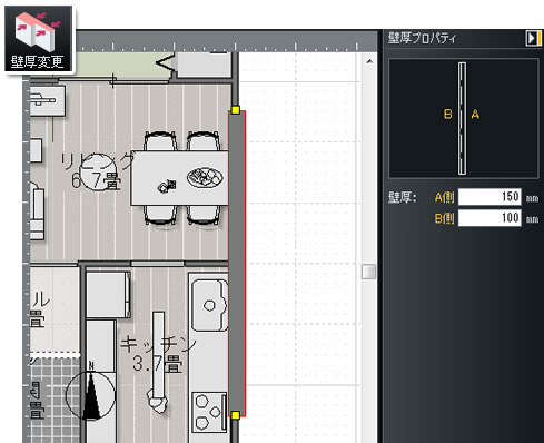 壁厚変更機能間取り&3D住宅デザインソフト3Dマイホームデザイナーメガソフト。