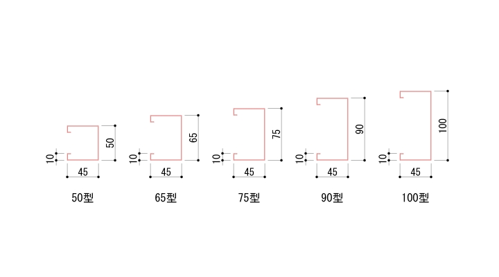 間仕切用LGS 鋼製壁用下地材 JIS規格・メーカー普及品寸法一覧。