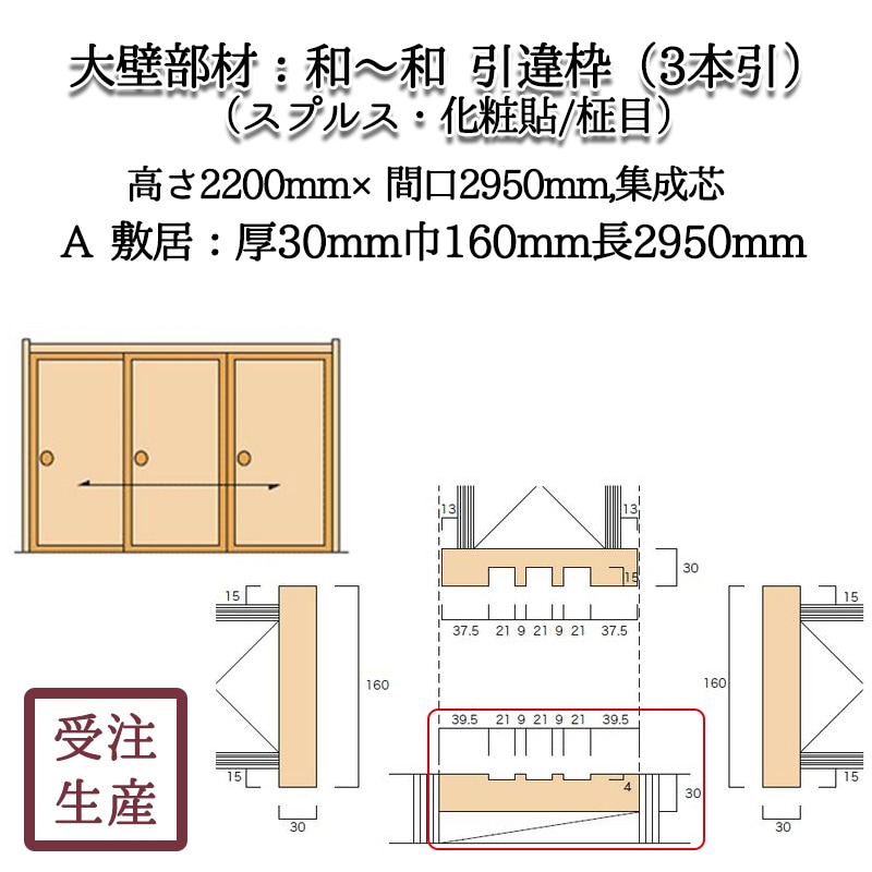 和~和 引違枠 3本引 10A 敷居 スプルス・化粧貼り 柾目集成芯 サイズ:厚30巾160長2950 mm重量:約9KG和室造作部材,大 壁部材,和~和 引違枠 3本引和室の木材屋和風造作材の加工販売、材木通販。