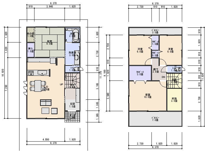 36坪 3.5間 間口 南入り 4LDK 和室8畳 建売 住宅 分譲 プラン データ。