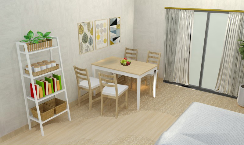 8畳1人暮らし ダイニングテーブルを置いたレイアウト│RoomTrip ルームトリップ。
