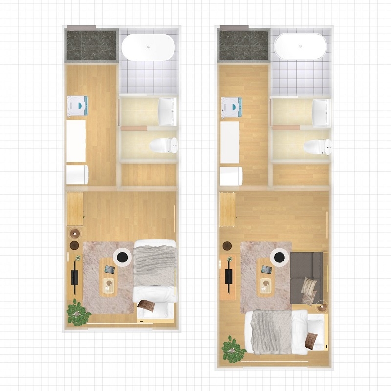 8畳1Kのおすすめレイアウトを解説!縦長や横長の長方形・正方形の8畳レイアウト実例&ポイント紹介a.flat 風が運ぶ、自然の贈りもの -目黒通り・新宿・大阪梅田 グランフロント北館。