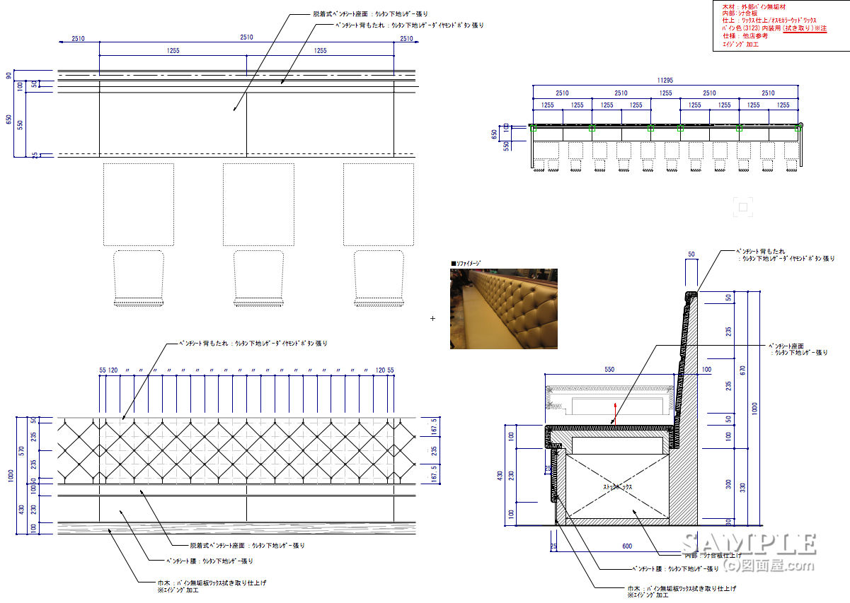 オーソドックスな布団張りベンチシートの作図事例 : 図面屋ま〜の "Easy Living" な日々。