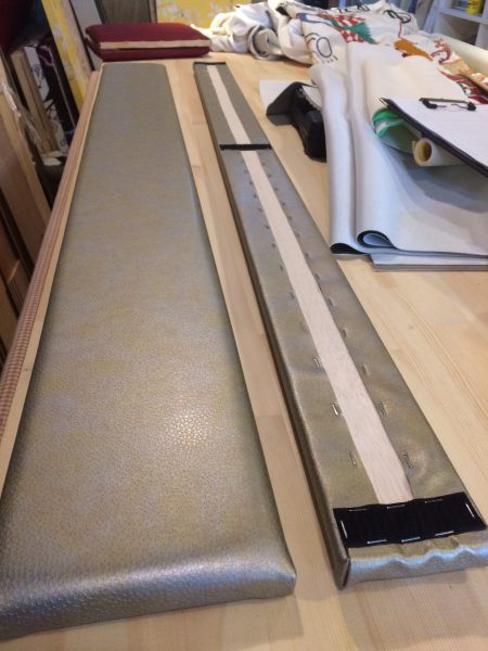 制作 - 004 壁面パネル 布団 張りの制作: 椅子修理・張替・製作 施工例。