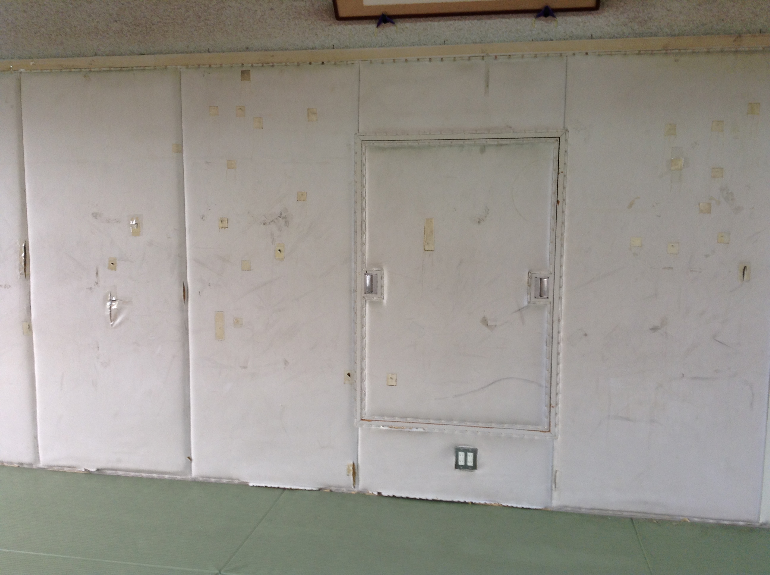 壁の布団張りのご依頼を頂きました。 サンゲツ マラスキーノ UP5976,。 艶のある布地や 柄の大きな布地が豪華になります。布団張りサンゲツ。