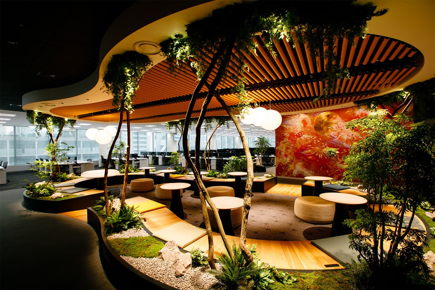エビデンスデータに基づく「オフィス緑化」の新展開 ~コモレビズが展開する快適オフィス環境「バイオフィリック・デザイン」とはオフィスデザイン事例アスクル みんなの仕事場。