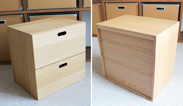 無印良品 スタッキングチェスト オーク突板2段 我が家は無印良品の「スタッキングシェルフ」に。