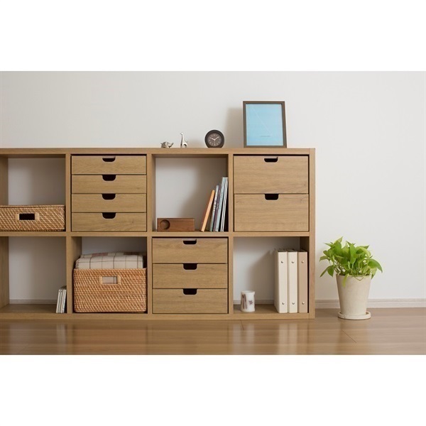 スタッキングシェルフ 引き出し1つ スタッキングチェスト・ハーフ・引出し・1段 オーク材突板。