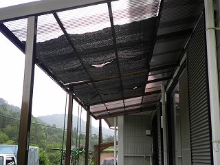 テラス屋根オプション 日除けシェード 四国化成 F.リード憩 いこい 用の外構施工例 現場番号:15097- ファミリー庭園和歌山店。