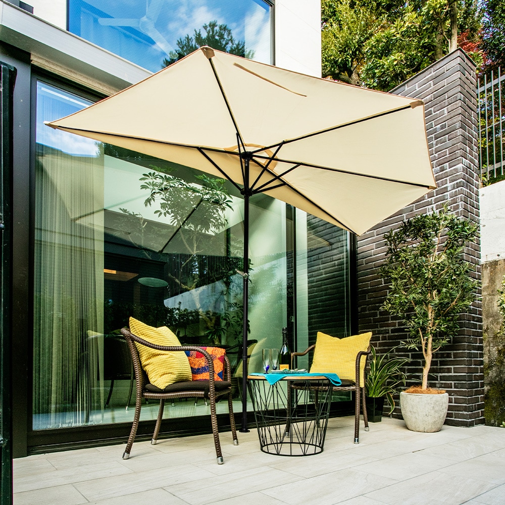 突っ張り式 日除け・雨除けパラソル 3M半円形 パラシェード PARASHADE ハーフ 紫外線カット 工事不要 テラス・ガーデンパラソル。