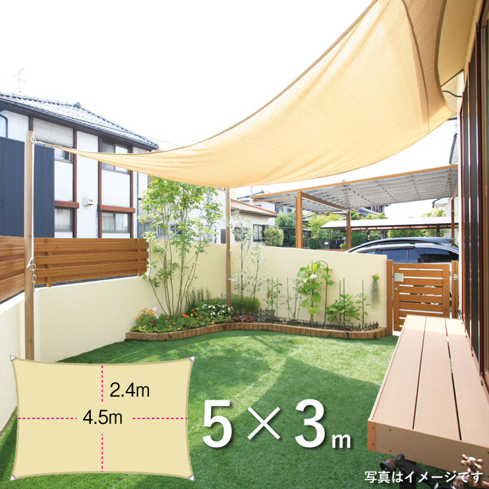 EPASHA 90% 日焼け止めシェード 布ネット サンシェード セイル テラス シェード ガーデンシェード メッシュ タープ パー 楽天市場 日よけシェード 日除け 屋外 サンシェード シート ガーデンパラソル シェードセイル レクタングル 縦5m×横3m 長方形 サンドカラー。