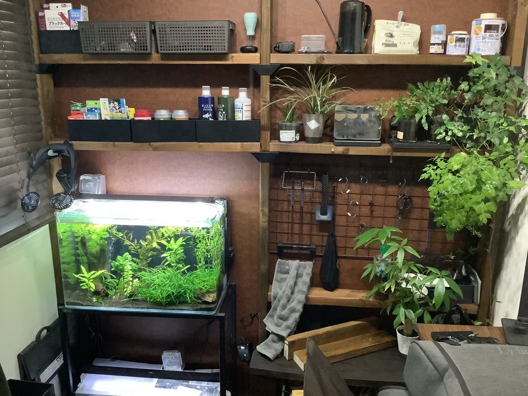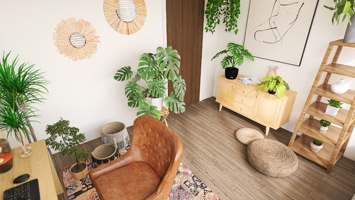 植物好きさん必見♪ブラウンとグリーンで統一したカフェ風の書斎カヴァースインテリア。