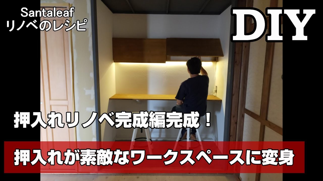 DIY 我が家の押入れがおしゃれな「押入れデスク」になりました! ワークスペース- YouTube。