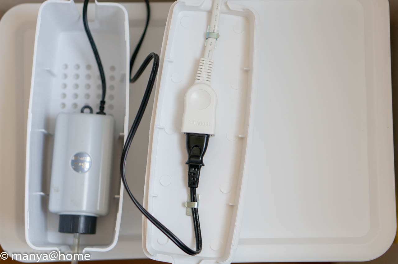 ダイソー ケーブルボックスの使い方。水槽の横にベストなサイズ!manya@home。