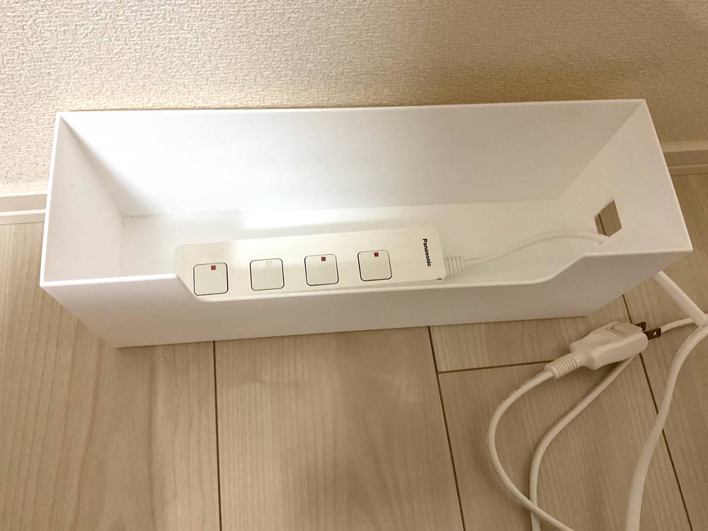 コンセントケーブルをまとめてスッキリ!100均で買ったケーブルボックスがジャストサイズでオススメ。 - 暮らしの顛末 くまくまコアラ。